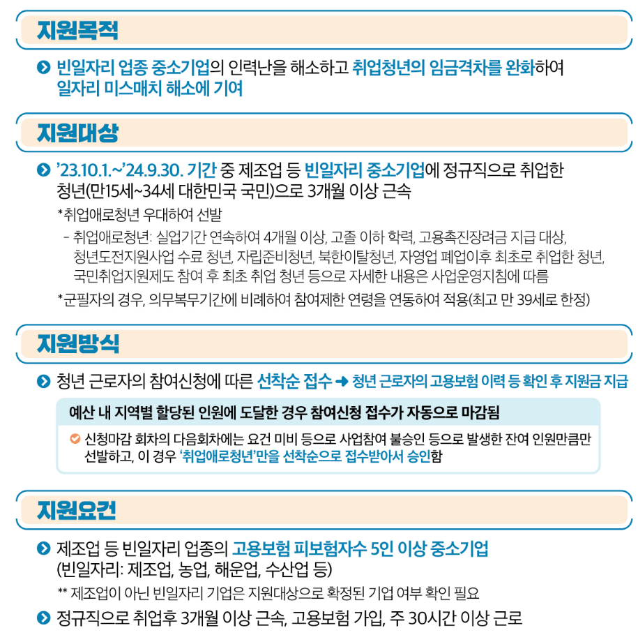 1.취업 기간: 2023년 10월 1일부터 2024년 9월 30일 사이에 취업한 청년