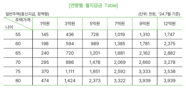 주택연금의 월지급금은 부부 중 연소자의 연령과 주택가격 및 주택유형에 따라 결정되며, 가입자의 생존확률, 주택가격상승률, 이자율 변동 등 미래의 불확실한 위험을 합리적으로 예측하여 매년 재산출하고, 신규 가입 고객에 대한 월지급금을 조정하고 있습니다.